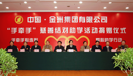 2007年12月16日上午,金洲集團(tuán)借座湖州市民政局會(huì)議室,舉行“手牽手”慈善結(jié)對(duì)助學(xué)活動(dòng)捐贈(zèng)儀式,向市區(qū)52名貧困學(xué)生發(fā)放了慈善結(jié)對(duì)助學(xué)卡,其中大學(xué)生7名,每人每學(xué)年受助標(biāo)準(zhǔn)是1000元,高中生45名,每人每學(xué)年受助標(biāo)準(zhǔn)是800元,總受助資金9.84萬(wàn)元。