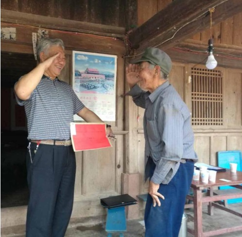 ▲慰問瀾滄縣上允鎮(zhèn)上允村水塘一隊老兵陳小友