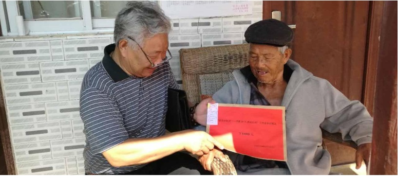 ▲慰問墨江縣京平村那海組烈屬李榮升。李榮升,現(xiàn)年61歲,家住墨江縣京平村那海組,交通不便??赐斕煲蛏铰菲閸鐭o法抵達,在鄉(xiāng)鎮(zhèn)留宿一晚,次日開車幾個小時才到達。李榮升2個月大還在襁褓之中時,其父為國獻身,家庭被授予烈屬稱號。2歲時隨母改嫁,前年母親去世,現(xiàn)與繼父和一個異胞兄弟一起生活。自己和40多歲的弟弟一直未成家,繼父年事已高,自己體弱多病。