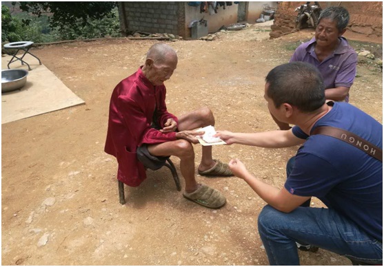 ▲慰問瀾滄縣上允鎮(zhèn)南洼村田頭寨老兵魯大七