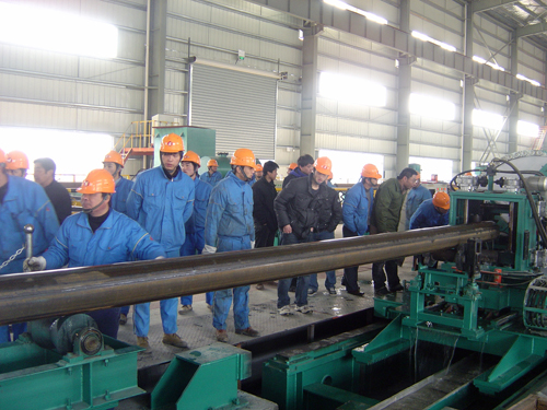 ERW219項目主設(shè)備引進青島昊坤重型機械技術(shù)有限公司國內(nèi)一流的自動化生產(chǎn)線,引進沈陽新瑞特機電設(shè)備有限公司國內(nèi)一流的銑切鋸設(shè)備,還配套了鞍山長風無損檢測設(shè)備有限公司在線板探、在線焊縫及離線焊縫超聲波檢測設(shè)備。車間主要生產(chǎn)Ф89-219mm,鋼級Q235-X70,產(chǎn)品品種為油井套管、小口徑厚壁管。一期工程(年產(chǎn)8萬噸Ф219mmERW油氣管生產(chǎn)線)順利完工,為二期工程(年產(chǎn)12萬噸國內(nèi)最先進的鋼級達X80的螺旋縫埋弧預(yù)精焊油氣管生產(chǎn)線)的實施奠定了扎實基礎(chǔ)。
