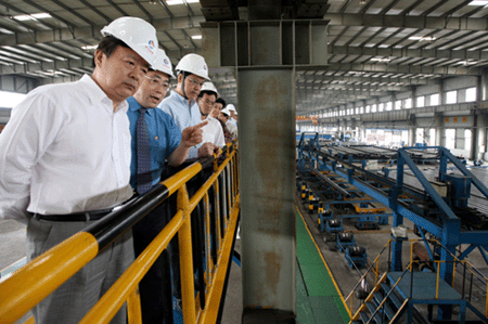 夏書記一行參觀了中海金洲公司ERW鋼管自動(dòng)化生產(chǎn)線,公司常務(wù)副總馬福平代表中海油金洲對(duì)夏書記的來(lái)訪表示衷心感謝并匯報(bào)工作。馬副總說(shuō),在省委省政府及市委市政府的領(lǐng)導(dǎo)下,中海金洲將充分發(fā)揮中國(guó)海油和金洲集團(tuán)的優(yōu)勢(shì),把學(xué)習(xí)實(shí)踐科學(xué)發(fā)展觀落到實(shí)處,為湖州市、為浙江省的經(jīng)濟(jì)發(fā)展和社會(huì)進(jìn)步作出貢獻(xiàn)。