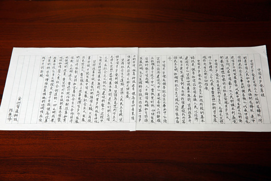 金洲廣大黨員、職工通過抄寫黨章表達(dá)對中國共產(chǎn)黨的無限熱愛。通過抄寫黨章,大家逐條逐句逐字領(lǐng)會,不斷加深理解,堅(jiān)定理想信念,黨性覺悟和工作熱情明顯提高,在日常學(xué)習(xí)、工作和生活中積極發(fā)揮先鋒模范作用,形成了良好的工作、學(xué)習(xí)氛圍。