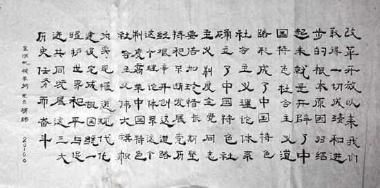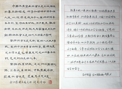近日,為慶祝中國共產(chǎn)黨成立95周年,積極推進(jìn)“兩學(xué)一做”活動深入開展,提升黨員、職工的文化藝術(shù)素養(yǎng)和書寫能力,進(jìn)一步構(gòu)建和諧企業(yè)、和諧社會,不斷營造企業(yè)職工愛國愛黨、崇德向善的濃厚氛圍,金洲集團(tuán)黨工團(tuán)聯(lián)合開展“手抄黨章”比賽活動。本次比賽得到了廣大黨員、職工的積極參與,共收到120余件作品,其中2件作品全文抄錄黨章。