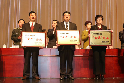 2月4日上午,全市深化“四個(gè)年”活動(dòng)暨作風(fēng)建設(shè)動(dòng)員大會(huì)在湖州大劇院隆重召開,市委書記裘東耀講話,市委副書記、市長(zhǎng)陳偉俊主持會(huì)議,市四套班子領(lǐng)導(dǎo)、市縣區(qū)主要領(lǐng)導(dǎo)、有關(guān)的企業(yè)主要負(fù)責(zé)人、受表彰的先進(jìn)集體和先進(jìn)個(gè)人代表等參加會(huì)議。金洲集團(tuán)榮獲2016年度湖州市金牛企業(yè)、湖州市納稅大戶兩項(xiàng)重要榮譽(yù)受到市委市政府的隆重表彰,集團(tuán)董事長(zhǎng)俞錦方代表公司上臺(tái)領(lǐng)獎(jiǎng)。
