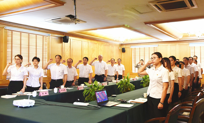 俞錦方書記帶領(lǐng)全體黨員莊嚴(yán)的重溫入黨誓詞