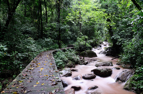 木棧道是森林里最自然的人工寫實(shí)。踩在踏板上發(fā)出與自然和諧的聲響,茂密的參天大樹透射出幾縷陽光灑在身上好不愜意,比起高樓聳立穿梭在飛奔的人群中與時(shí)間賽跑,我更愿意呆在這,關(guān)掉與外界一切聯(lián)系,做個(gè)山間野夫用力呼吸來凈化我已染塵多年的身心。在這里耳邊只有風(fēng)聲、蟲鳴、鳥叫,置身其中仿佛都不是自己,全身飄飄然放飛著靈魂,跟隨著水聲穿過密林來到一片開闊的土地上,高山流水,云霧繚繞仿佛來到仙境中,導(dǎo)游告訴我們說:“這是要下雨的節(jié)奏,不過沒關(guān)系,下雨了森林就開始唱歌了?!惫黄淙?,雨滴飄15.jpg落下來,奇妙的是它并不是涼的,飄灑在身上唱起了歡快的“滴答”歌,爬滿粗藤的大樹互相在雨里講訴著古老的故事,這個(gè)時(shí)候你只要用心聽,你就真的能聽到森林在唱歌,雨沒過多久就停了,我們圍成圈坐下來,呼吸著來自泥土的芬芳,雨后的森林更是通透,蝴蝶在溪谷間翩翩起舞,各種水禽在濕地印腳丫,偶爾會有幾只野猴來到你身邊向你討食,打量你一番甩尾走人,森林里隨處可見各種珍貴的活化石“石斛”、“中華桫欏”,導(dǎo)游說它們從恐龍時(shí)代就一直在這里直到至今,走走停停你完全不會感到疲憊,一會密林環(huán)繞,一會視野開闊,一會驚奇發(fā)現(xiàn)黑熊就在你身邊游走但人家對你不感興趣,一會乍一看才知道你踩的這個(gè)樹根只不過是十米開外的古樹的支腳,不管是天上飛的還是地上跑的,即使你突然闖入進(jìn)來也能馬上與他們?nèi)跒橐惑w,這就是這片森林的胸懷,你倦了,累了,不能向前了,不妨自私的把靈魂托付給這片森林讓其為你凈化,升華。