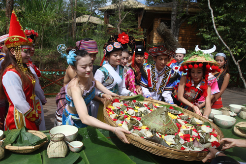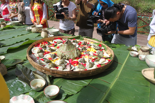 參加本屆普洱太陽河國家公園舉辦的少數(shù)民族共有26個,其中有25個是少數(shù)民族,都是云南特有的少數(shù)民族,普洱當?shù)氐纳贁?shù)民族也在內(nèi),分別是彝族、佤族、拉祜族、哈尼族、傣族。除了少數(shù)民族還有1個漢族,共組成26種民族齊聚國家公園參加這次“少數(shù)民族粽子節(jié)”。這次活動不僅有來自各個地方的不同民族的特色食材,而且有的民族在端午節(jié)是沒有包粽子的習俗,為了讓更多人了解自己民族的特色食材,這些民族把食材融入到粽子里,供大家品嘗、投票。最后由這26個民族齊心協(xié)力包出了一個重達5.78公斤的“民族團結粽”,堪稱“云南第一粽”。