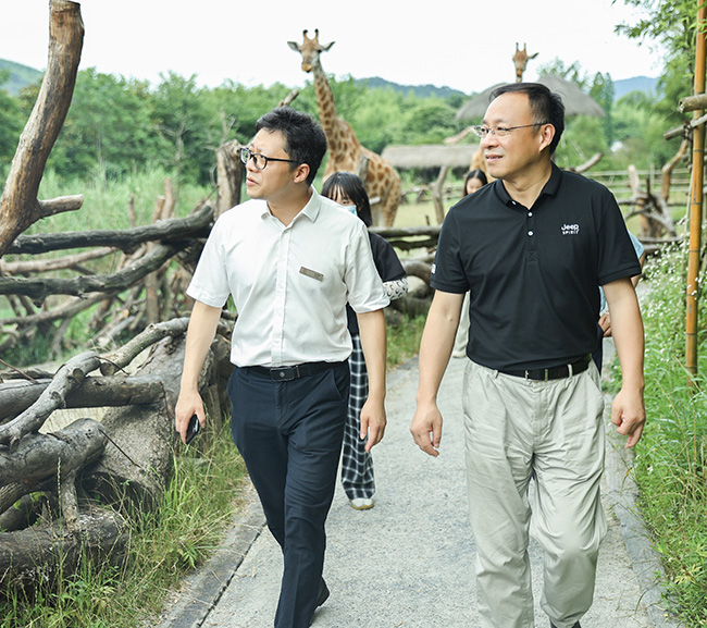 汪利輝執(zhí)行院長(zhǎng)在長(zhǎng)頸鹿莊園負(fù)責(zé)人的陪同下參觀莊園